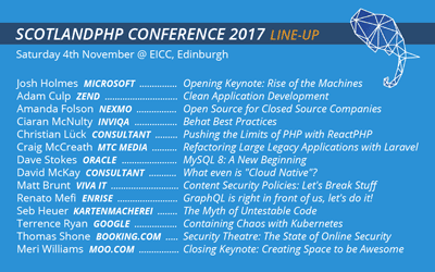 Speakers: Paul Dragoonis, Jordi Boggiano, Mikhail Bodnarchuk, Alexander Makarov, Sergey Yakovlev and the list is not final.